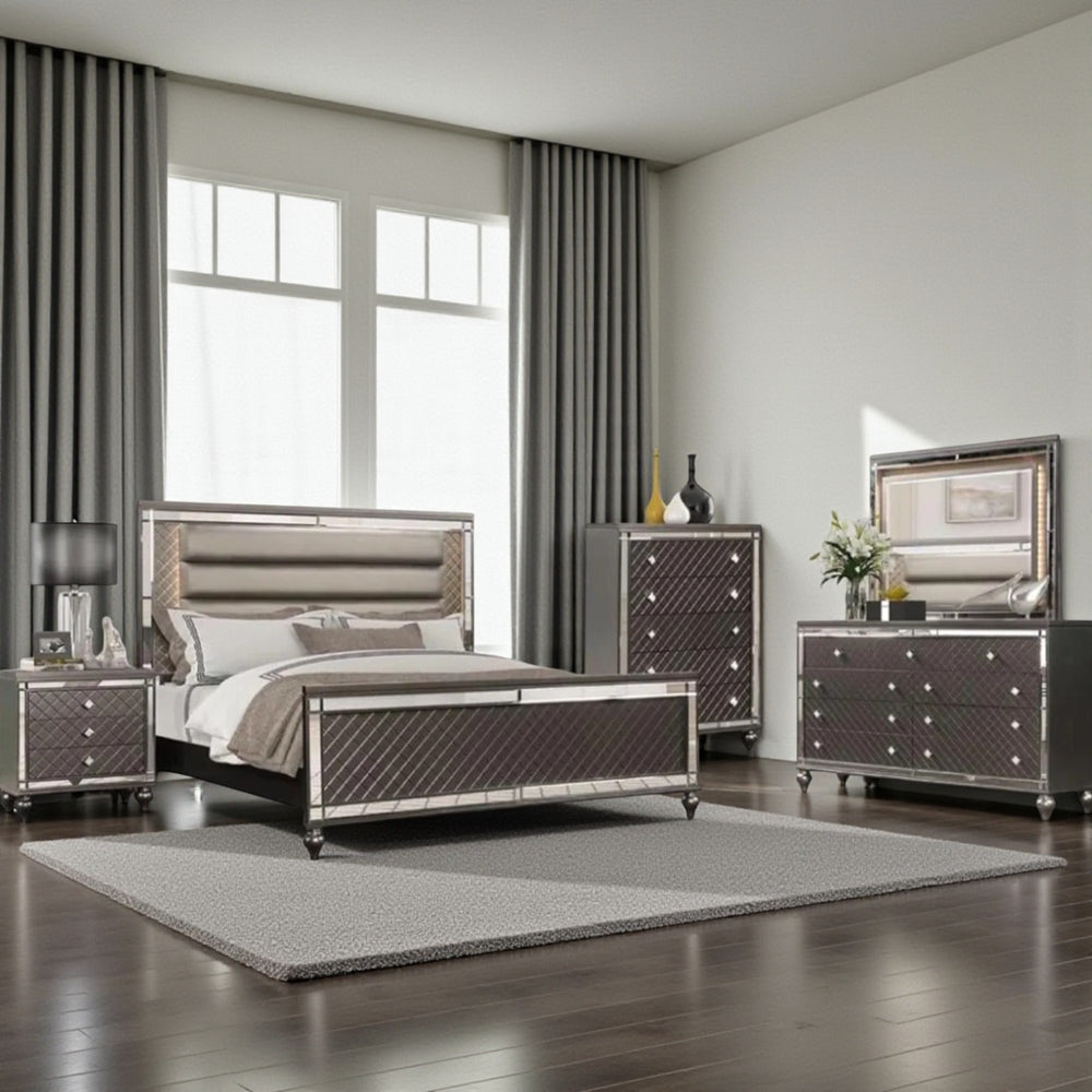 Lustre 8-Piece Bedroom Set With LED Lighting & Crystal Accents - Charcoal