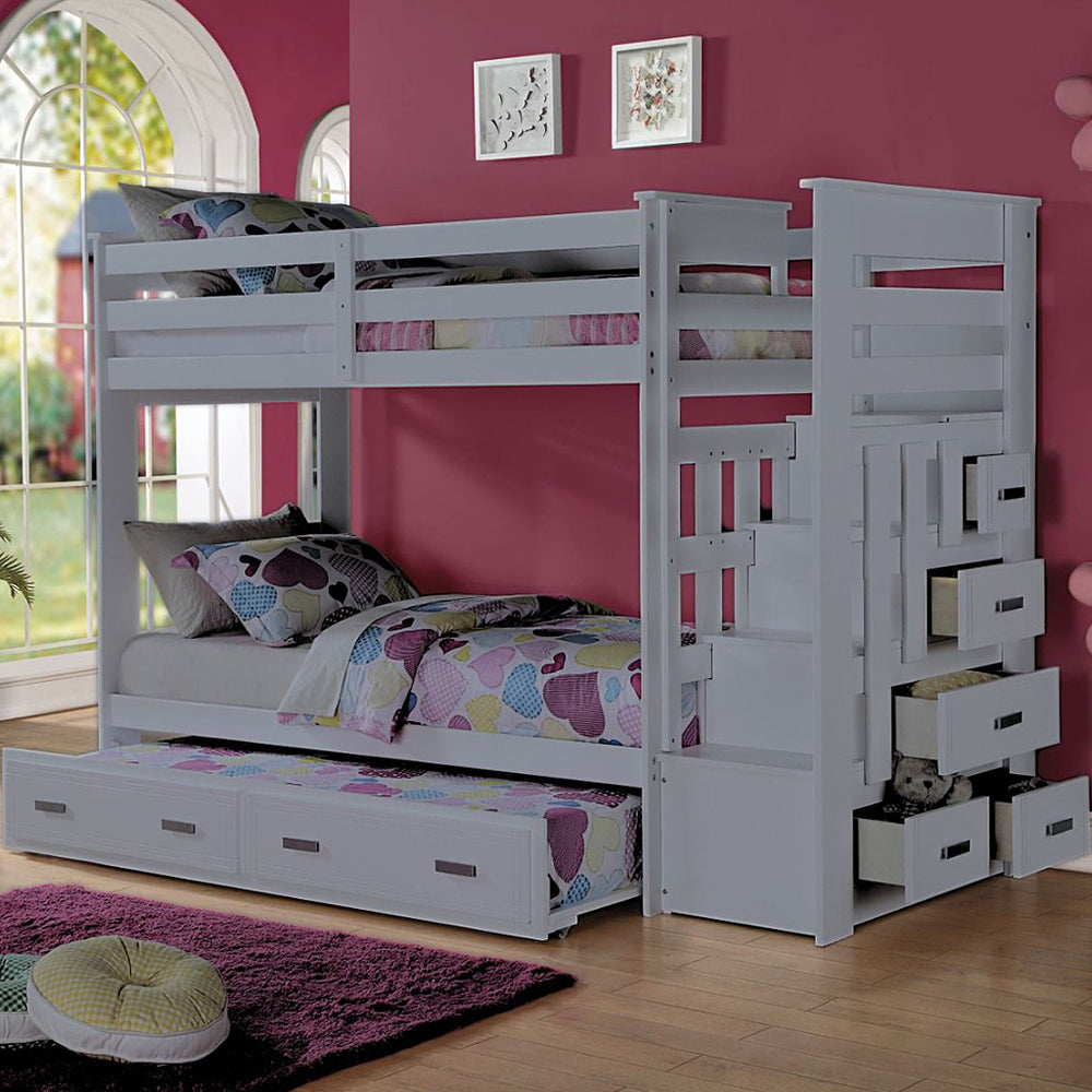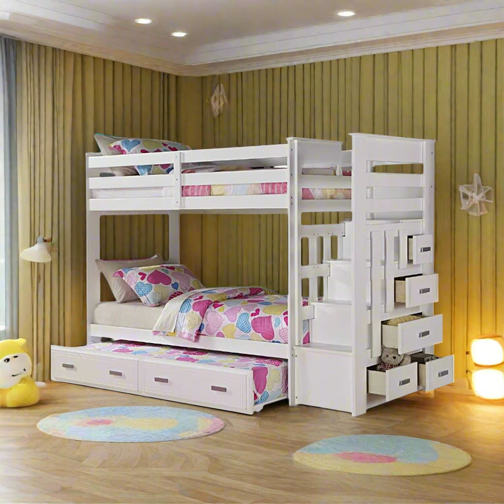 Our bunk beds with stairs are not only safe for climbing but also smartly integrated with storage steps, combining two essential functions in one stylish design.