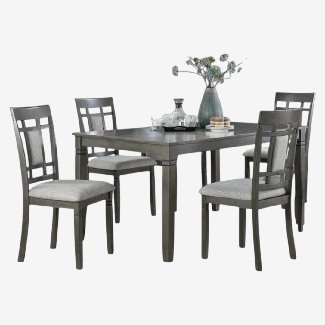 Alexia Wooden Dining Table Set With Fabric Upholstered Chairs - Grey | Available in 5-Piece & 7-Piece Set