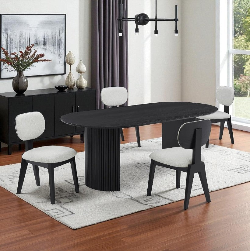 - Refined Aesthetic: Contemporary design with a vertical grooved table base and elegant midnight black finish, creating a bold yet sophisticated statement in any dining space.