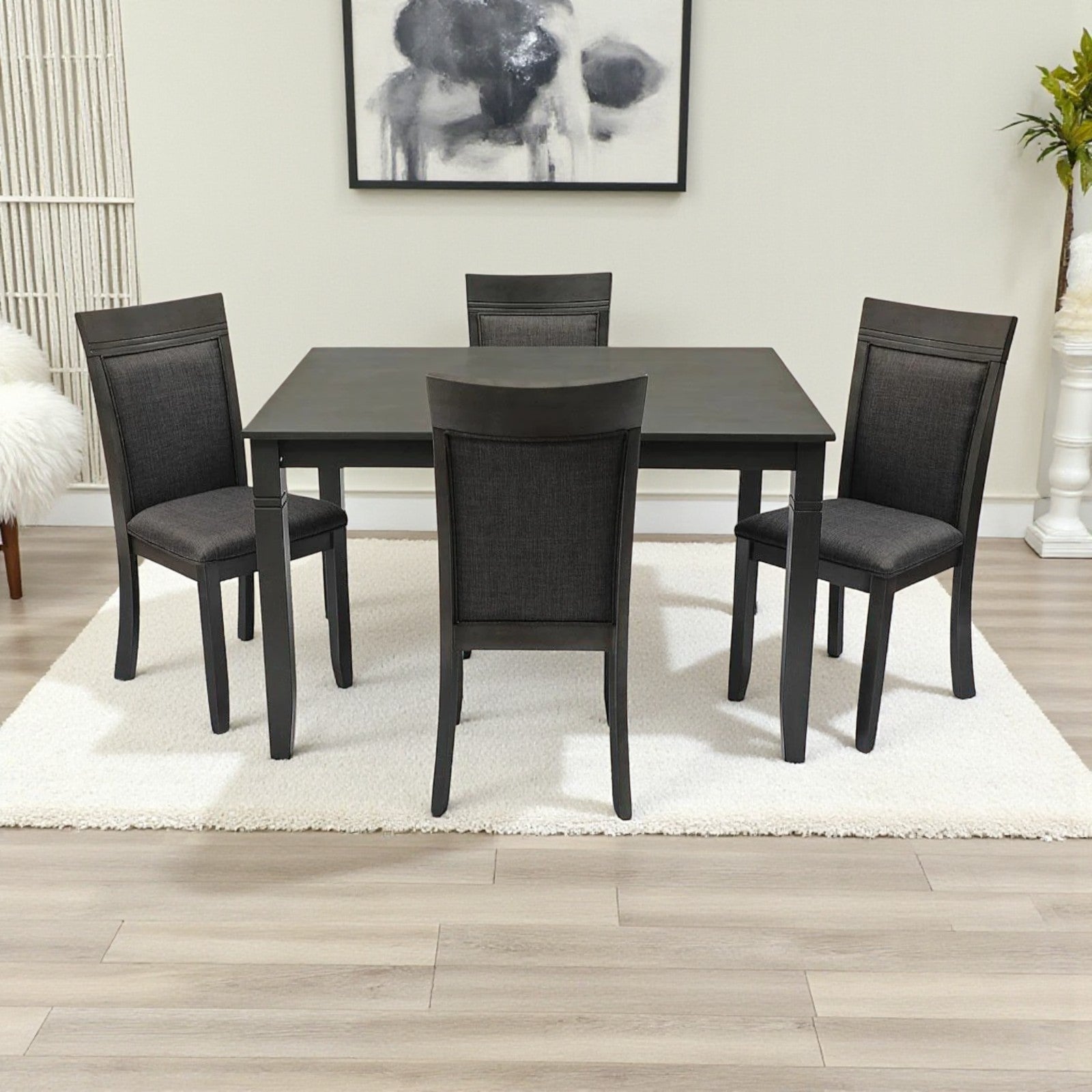 - Upholstered Chairs: Chairs feature soft grey polyester fabric upholstery on both seat and back, offering a refined look with comfort.