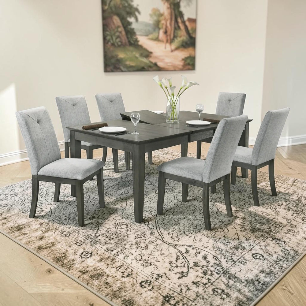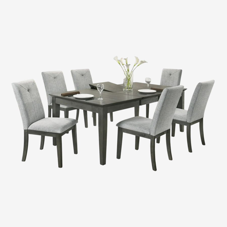 A table and six chairs. Our 7 piece dining table sets are the ideal middle ground for families who need more seating than a 5 piece offers but aren't ready to commit to a full 8 seater layout. Flexible, functional, and excellent value.