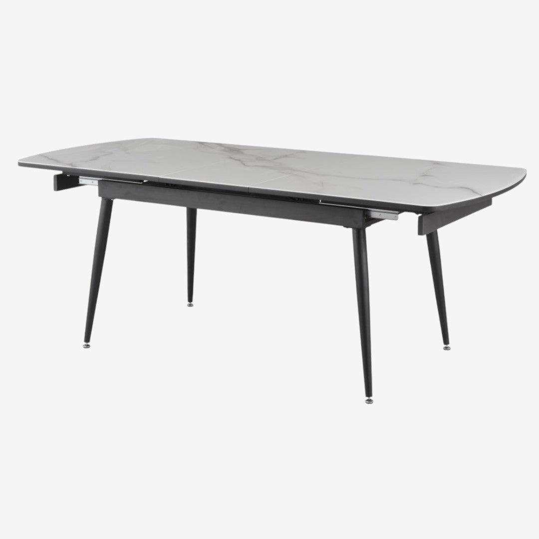 - Refined Aesthetic: Showcasing a timeless design with splayed legs and striking white-and-black contrast, this table delivers a perfect balance of modern minimalism and classic elegance.