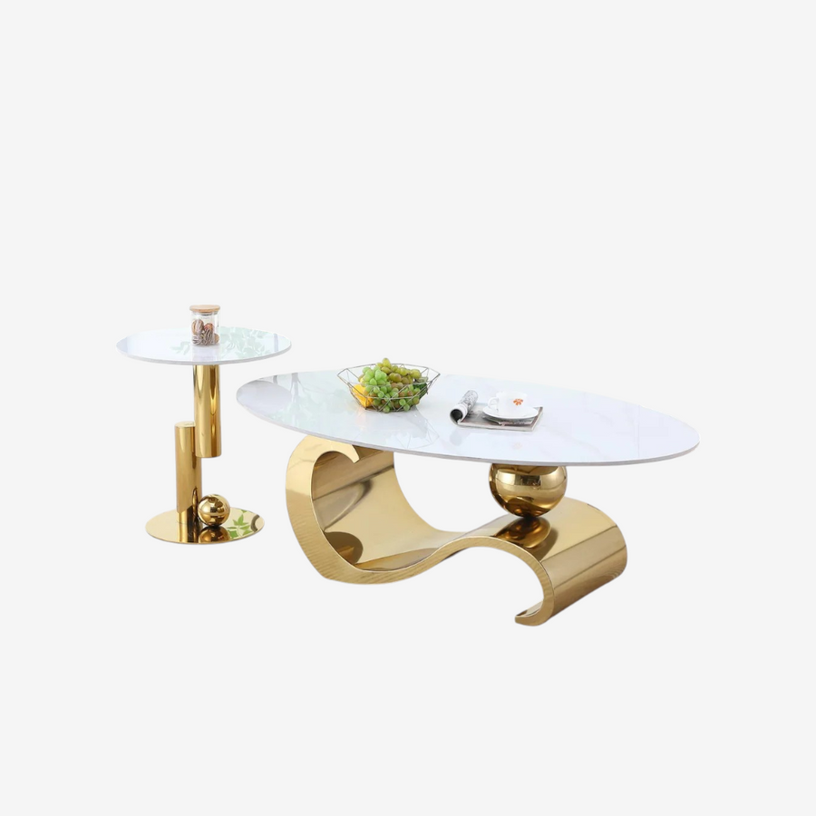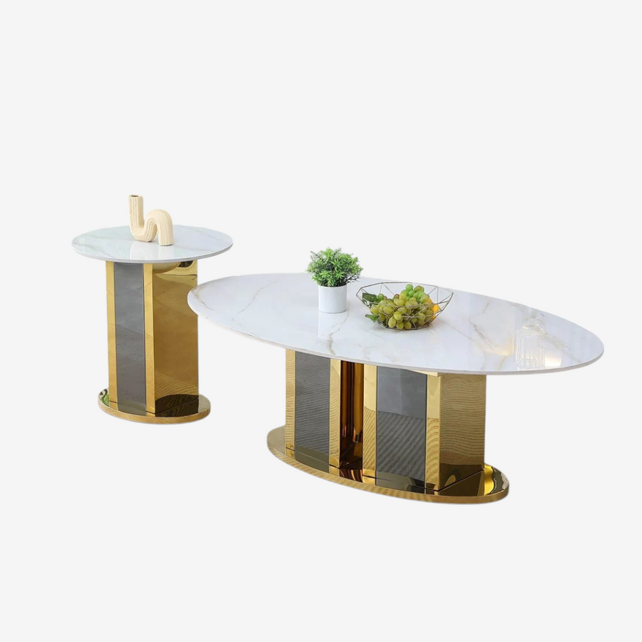 Luna Metallic Coffee Table Set In Polished Gold/ White Finish