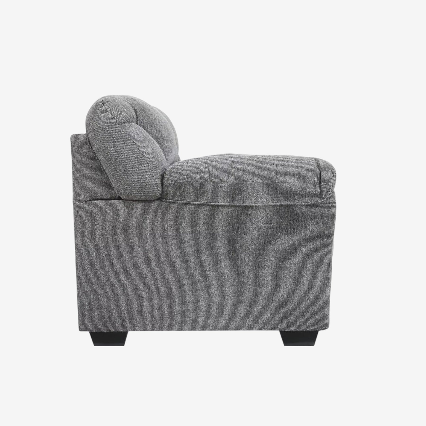 - Refined Aesthetic: Designed in a contemporary style with plush pillowtop arms, tufted backrest, and black nickel-tone nailhead detailing, all complemented by pewter finish.