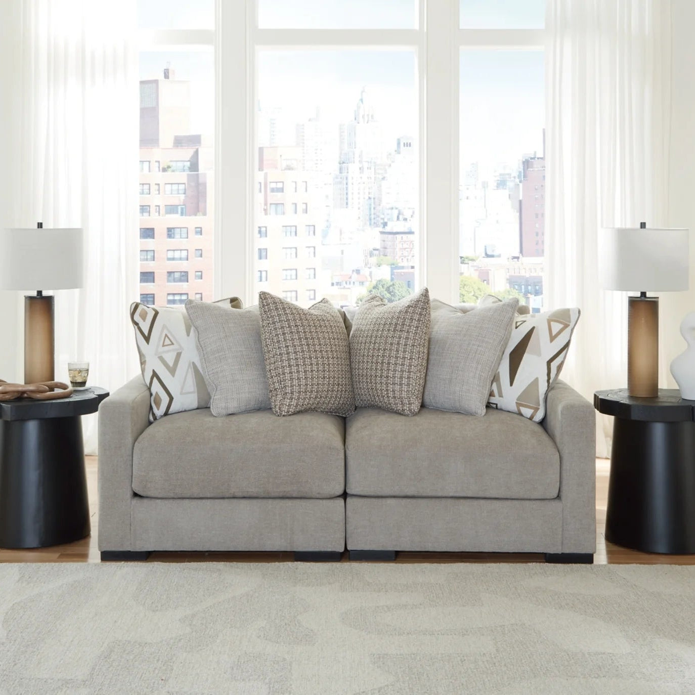 - Refined Aesthetic: Showcases a clean, modern look with modular-inspired silhouette, sleek track arms, and soft pebble finish.