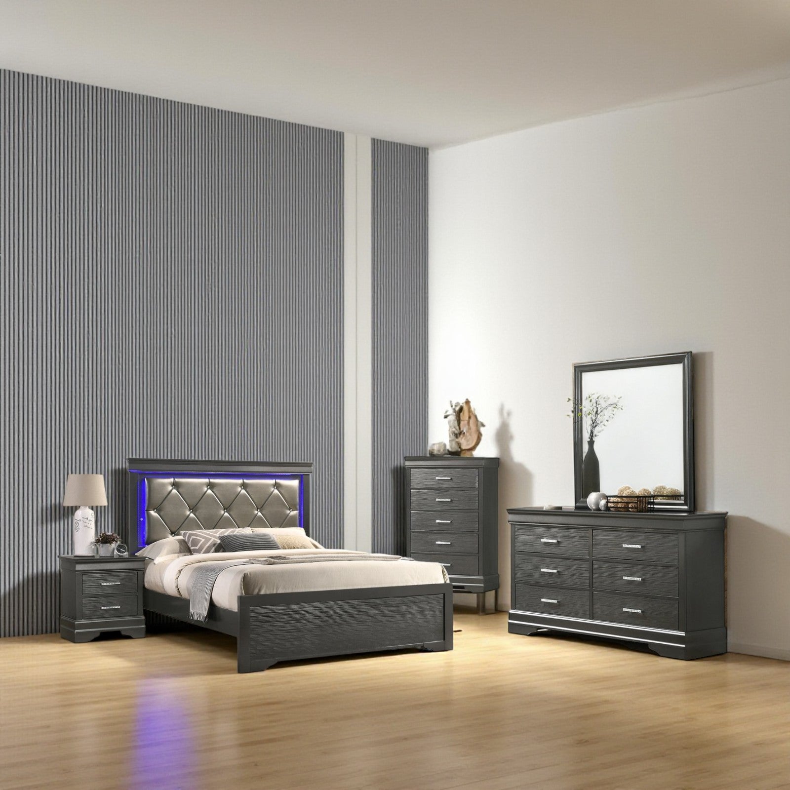 6-Piece Set: Includes 01 King/ Queen Bedframe (Headboard, Footboard, Rails), 01 Dresser, 01 Mirror and 01 Nightstand.