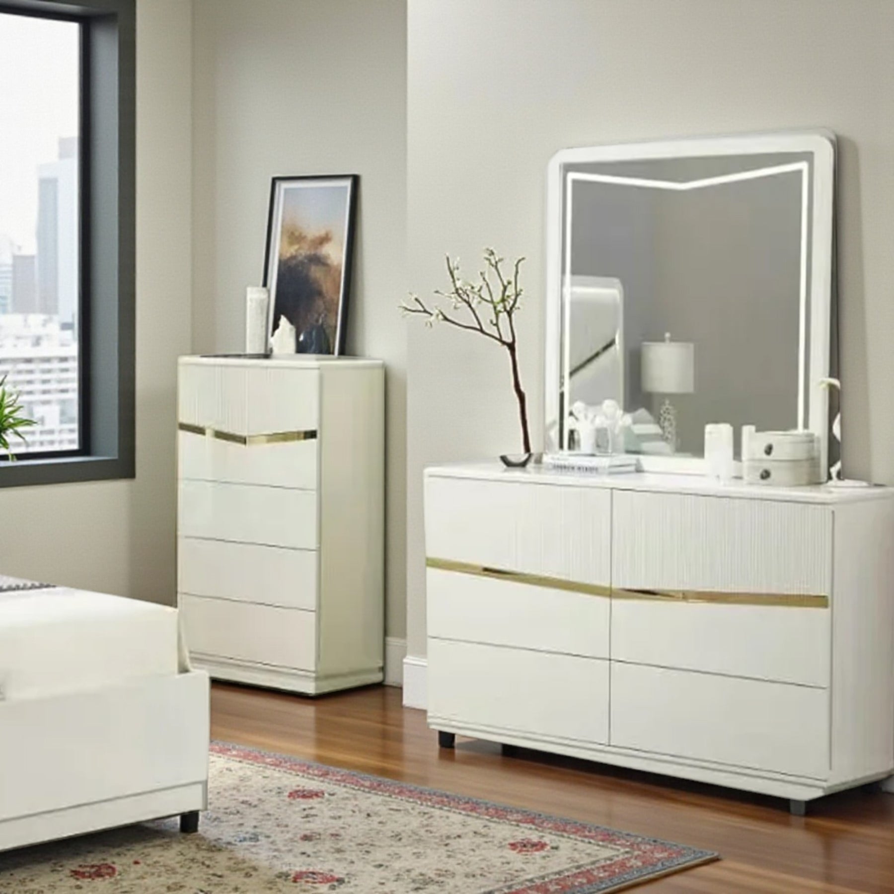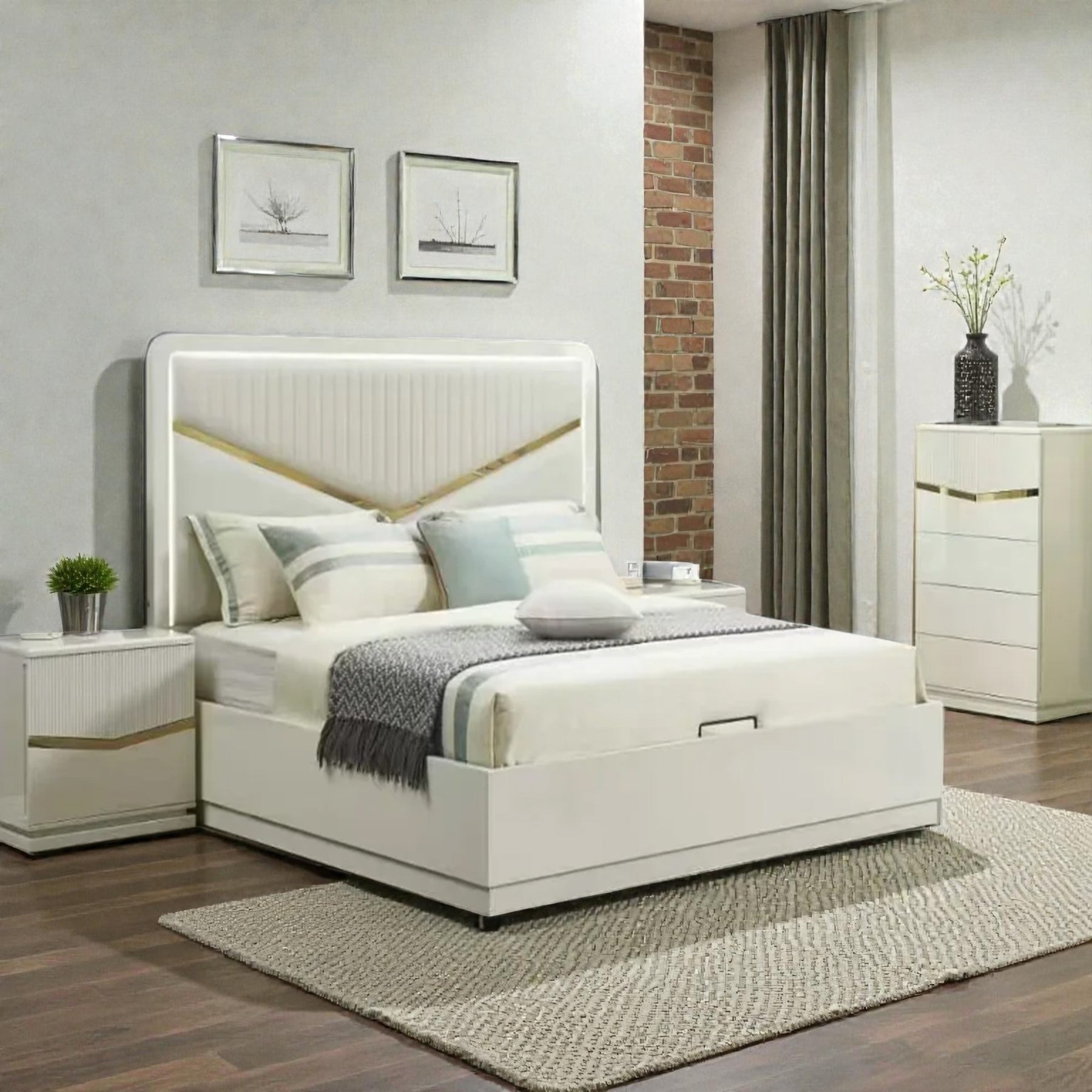 - Refined Aesthetic: Timeless style enhanced with gold accents and a clean white finish that brings a luxurious appeal to any bedroom.