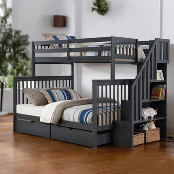 • Built-in Staircase: Features a built-in staircase designed to be installed exclusively on the right side for easy and safe access to the top bunk, adding convenience and safety.