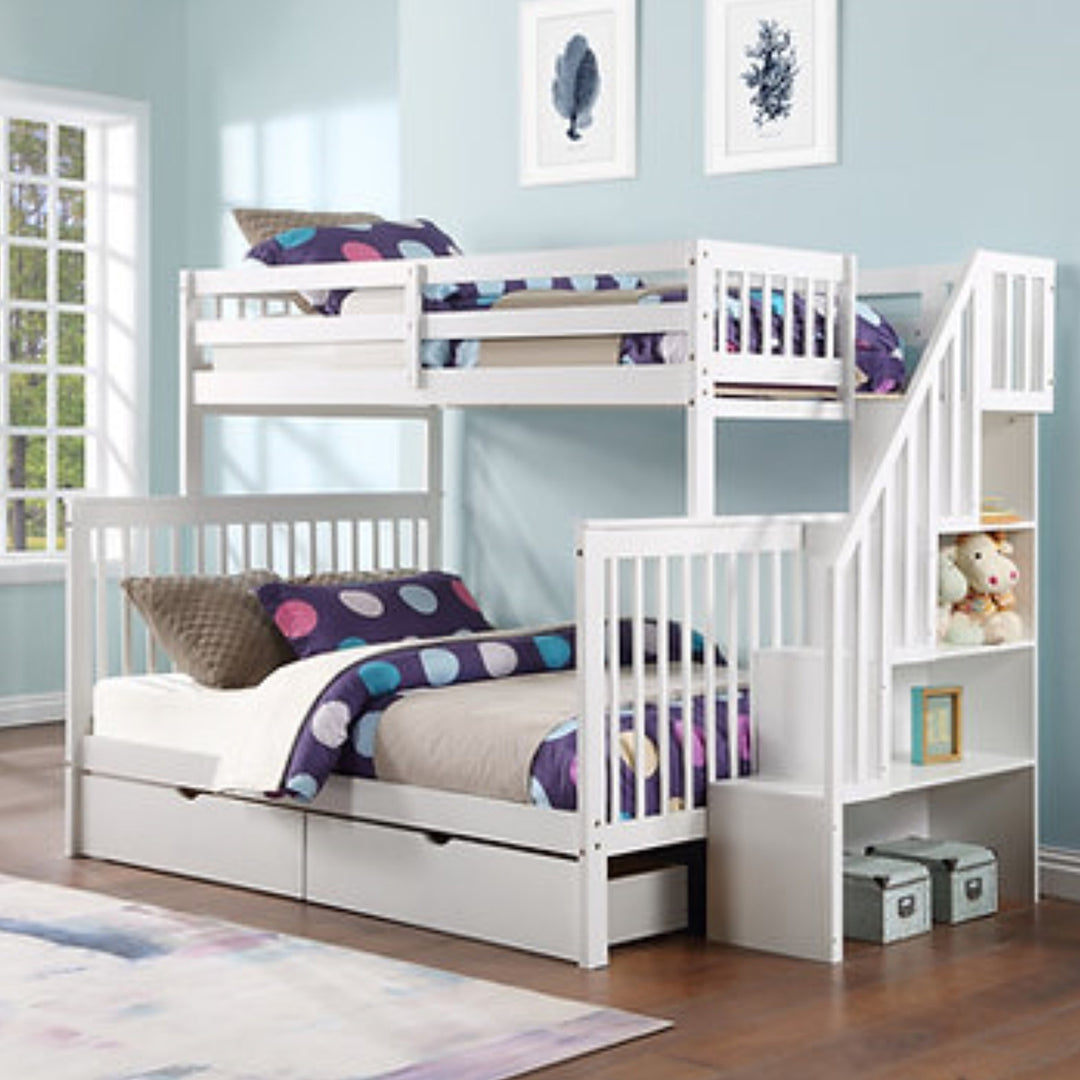 Storage Shelves: Features storage shelves on the side of the staircase, providing convenient space for books, toys, or other bedside essentials.