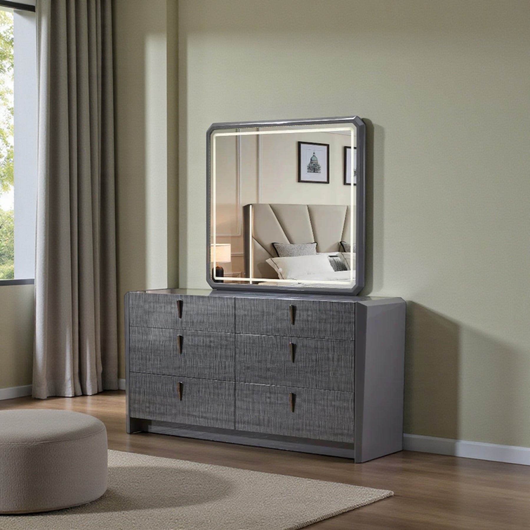 6-Piece Set: Includes 01 King/ Queen Bedframe (Headboard, Footboard, Rails), 01 Dresser, 01 Mirror and 01 Nightstand.