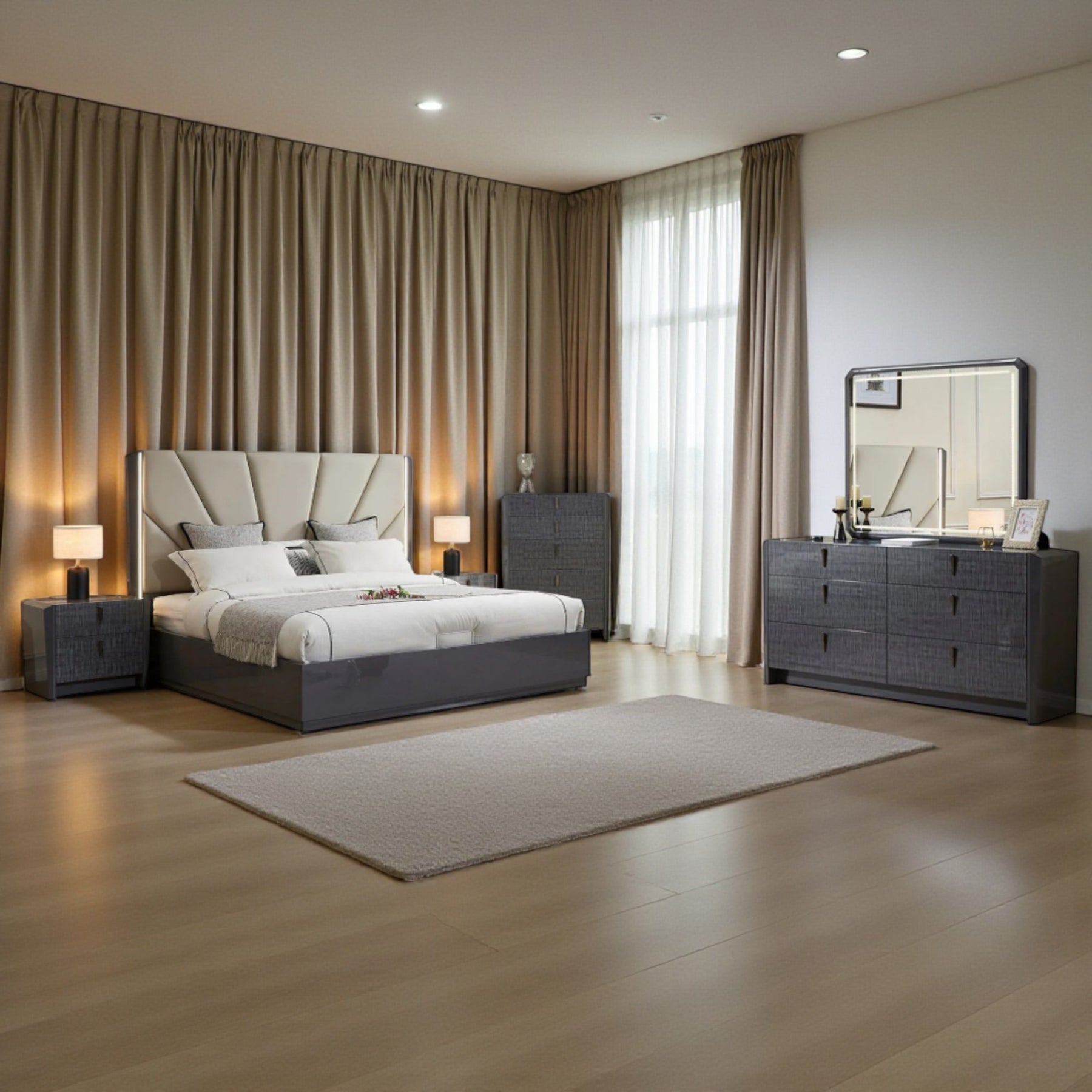 Transform your bedroom into a sanctuary of elegance and comfort with the Nocturne Bedroom Set, a masterful blend of sophistication, durability and functionality. Designed to complement both modern and contemporary interiors, this luxurious set boasts high-quality materials, thoughtful details and ample storage solutions to enhance your everyday living. Available in two package options: