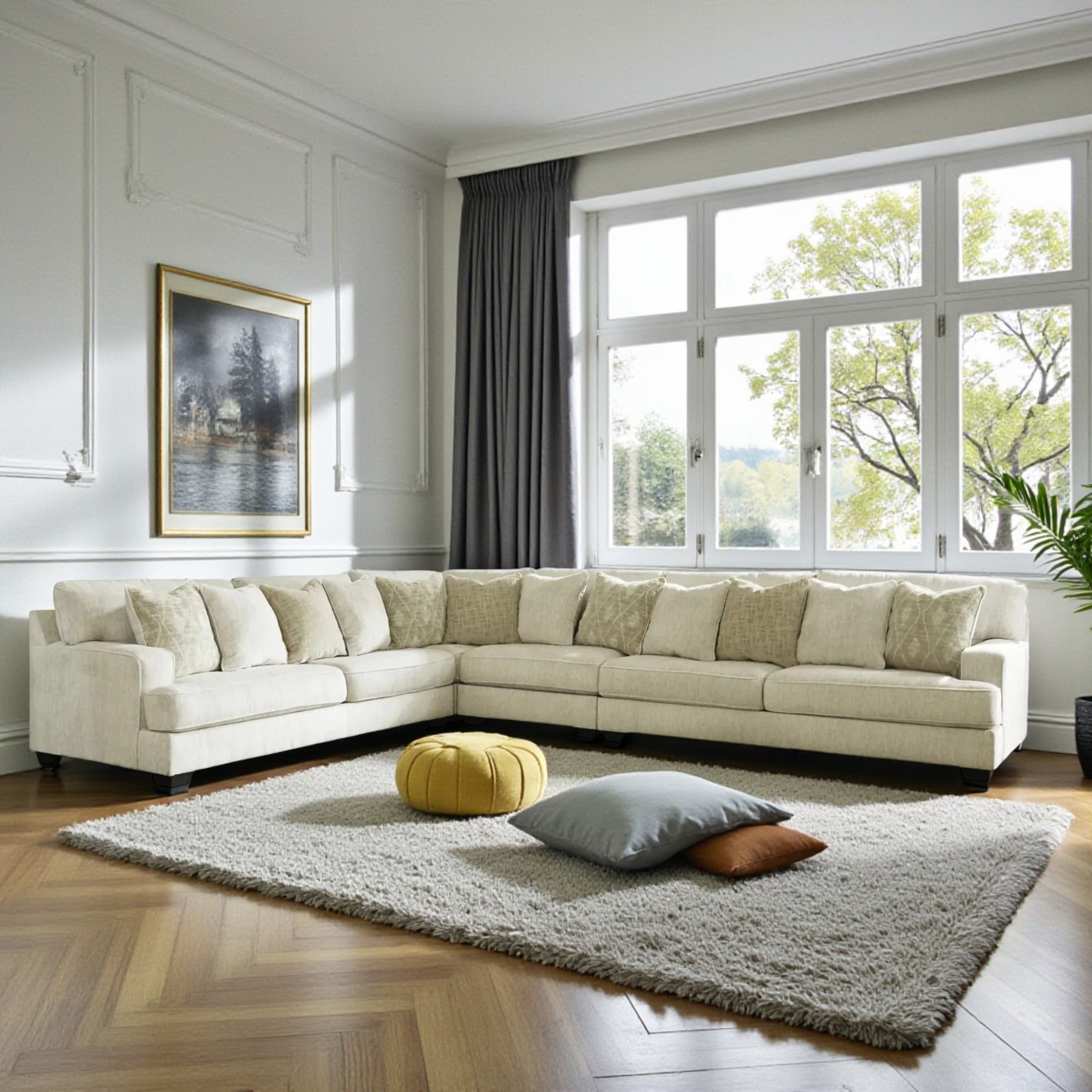 - Accent Pillows Included: Comes with twelve generously filled throw pillows featuring soft polyfill to enhance comfort and visual appeal.