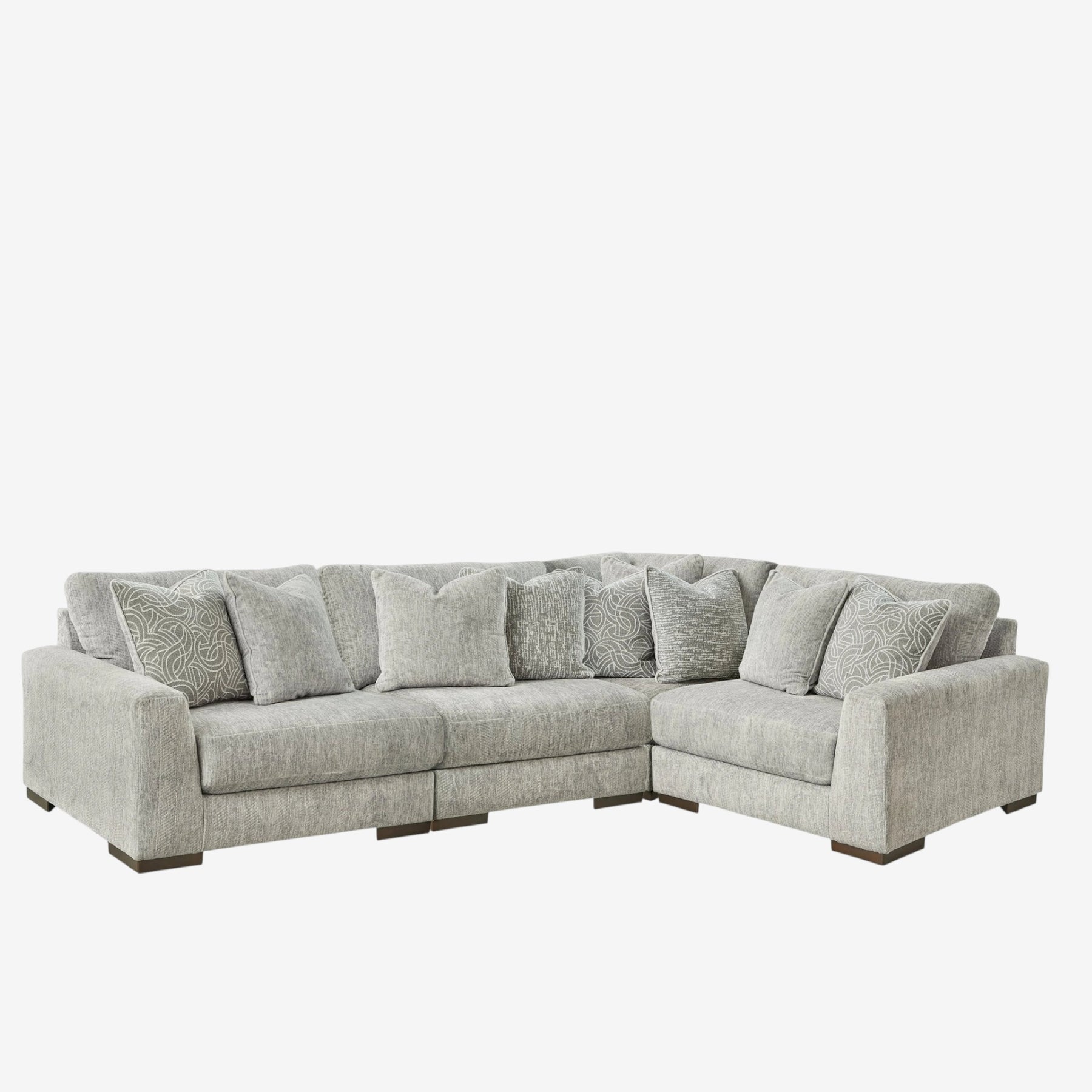 - Refined Aesthetic: Designed with a timeless L-shaped profile, clean track arms, and sophisticated pewter finish.