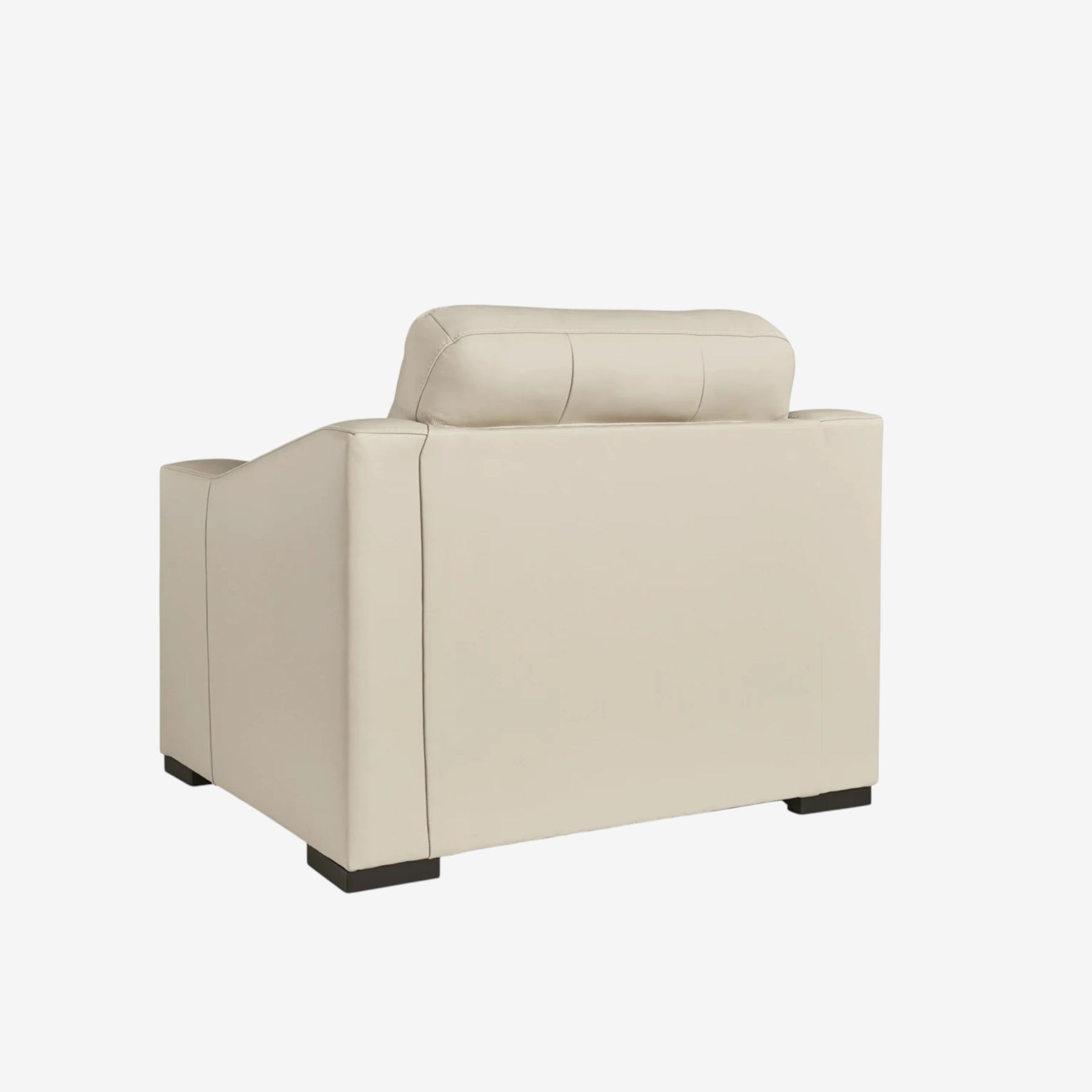 - Refined Aesthetic: Showcases modern silhouette with tufted backrest, slope-style track arms, and a warm almond finish.