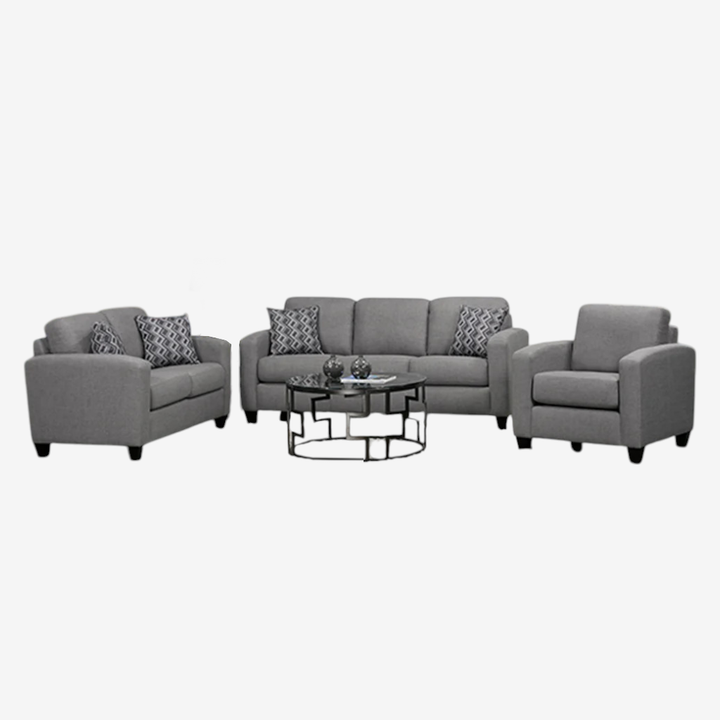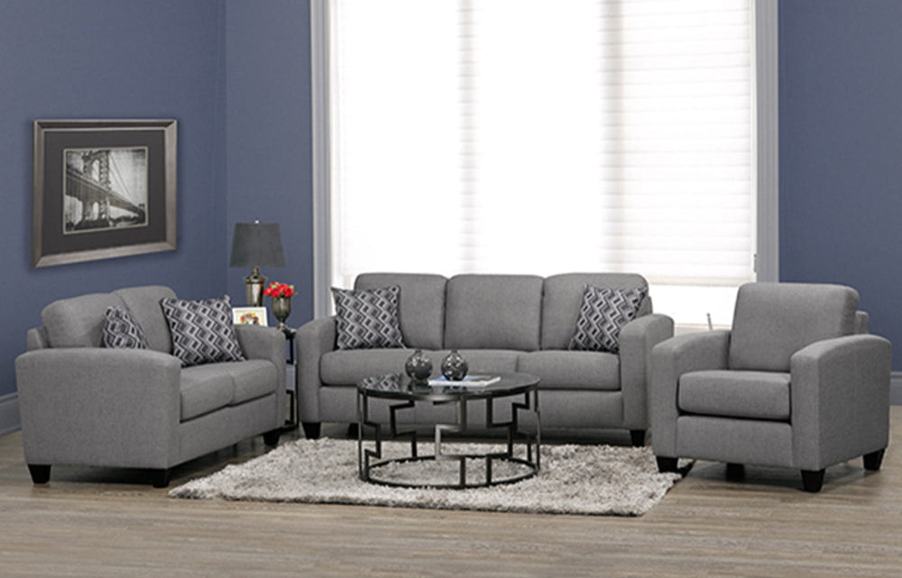 Introduce contemporary charm into your living room with the Twilight Sofa Set (made in Canada), a perfect blend of timeless elegance, reliable durability, luxurious comfort and everyday functionality. This set includes one armchair, one loveseat and one sofa, designed to suit modern lifestyles.