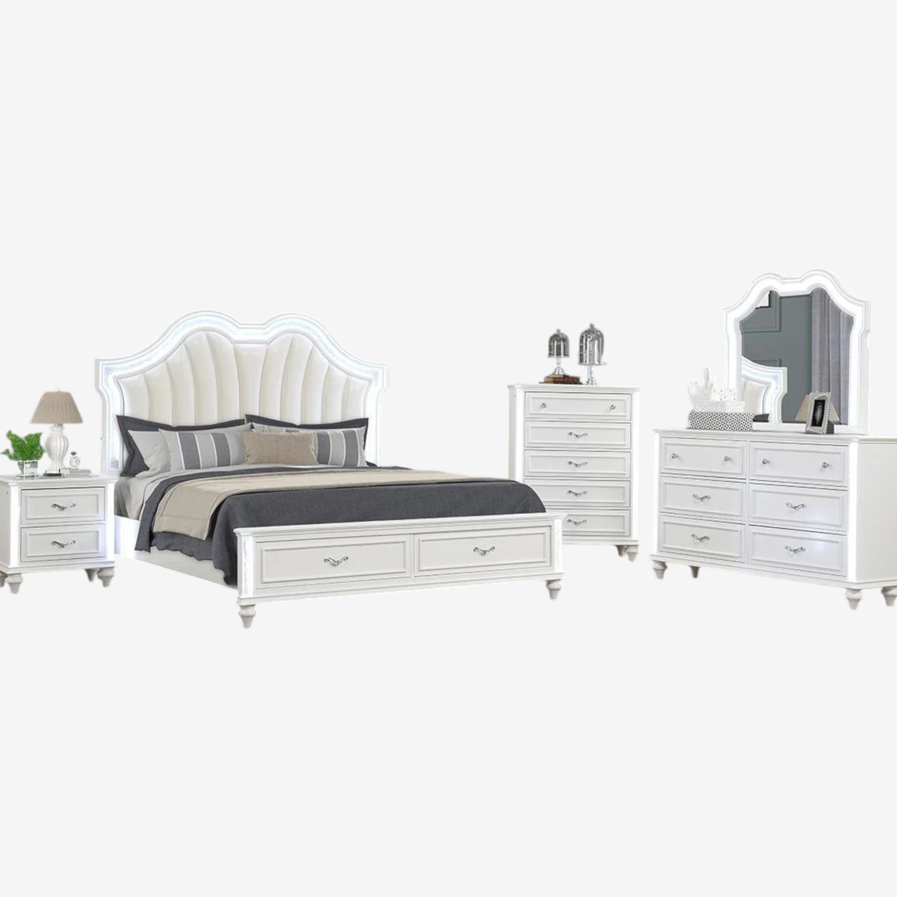 Introducing the Vivid Bedroom Set, a harmonious blend of timeless style, elegance, luxury, and durability. This complete set includes a King or Queen-size bed frame (headboard, footboard and rails), two nightstands, a dresser, and a storage chest, offering everything you need to create an elegant and comfortable bedroom. Experience the perfect balance of comfort and style for restful nights and a beautifully designed space.