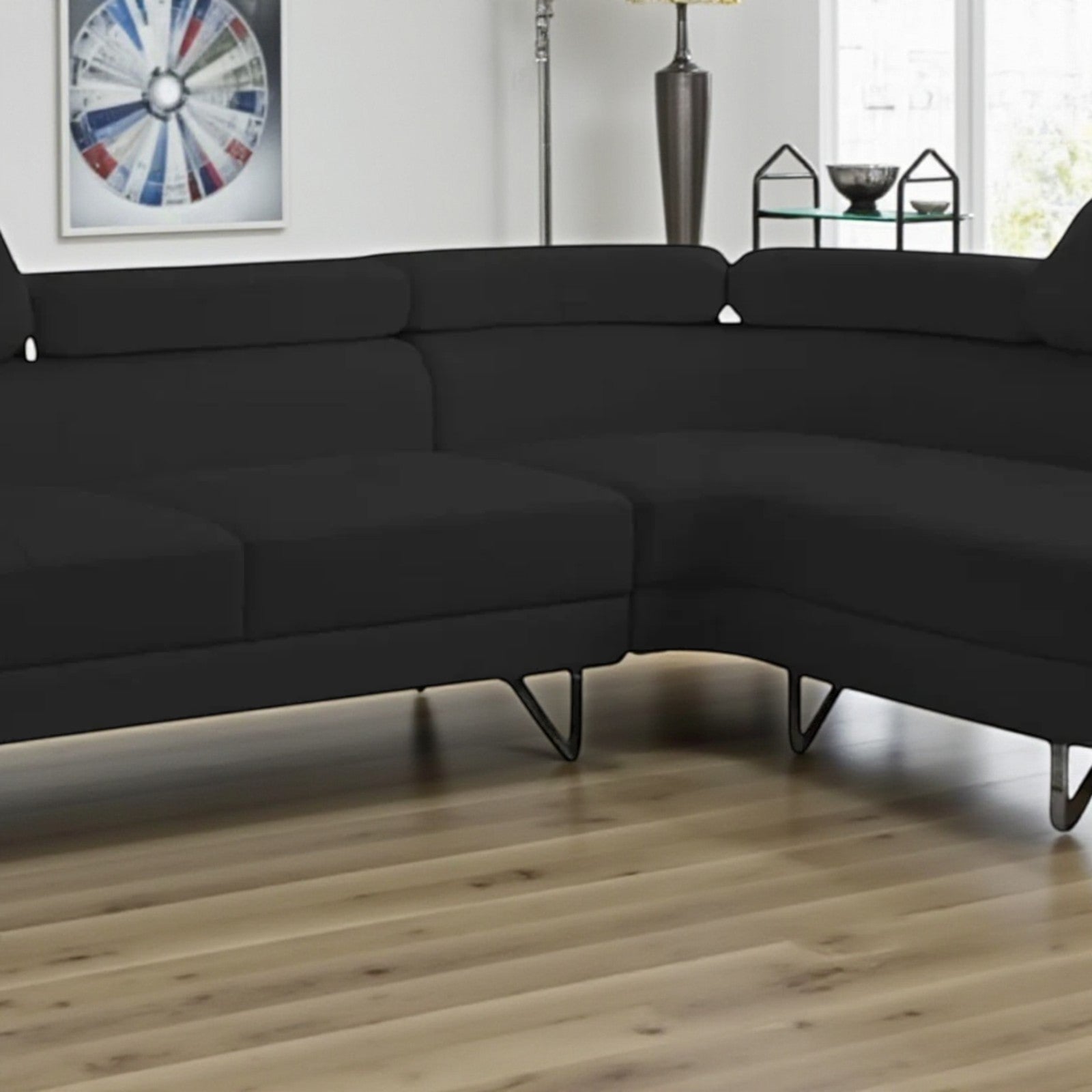 Captivating Look: With its striking design and rich faux leather in eye-catching black finish, the Wisla Sectional Sofa captures attention and adds a touch of elegance and sophistication to your living space, enhancing the overall aesthetic appeal of your home.